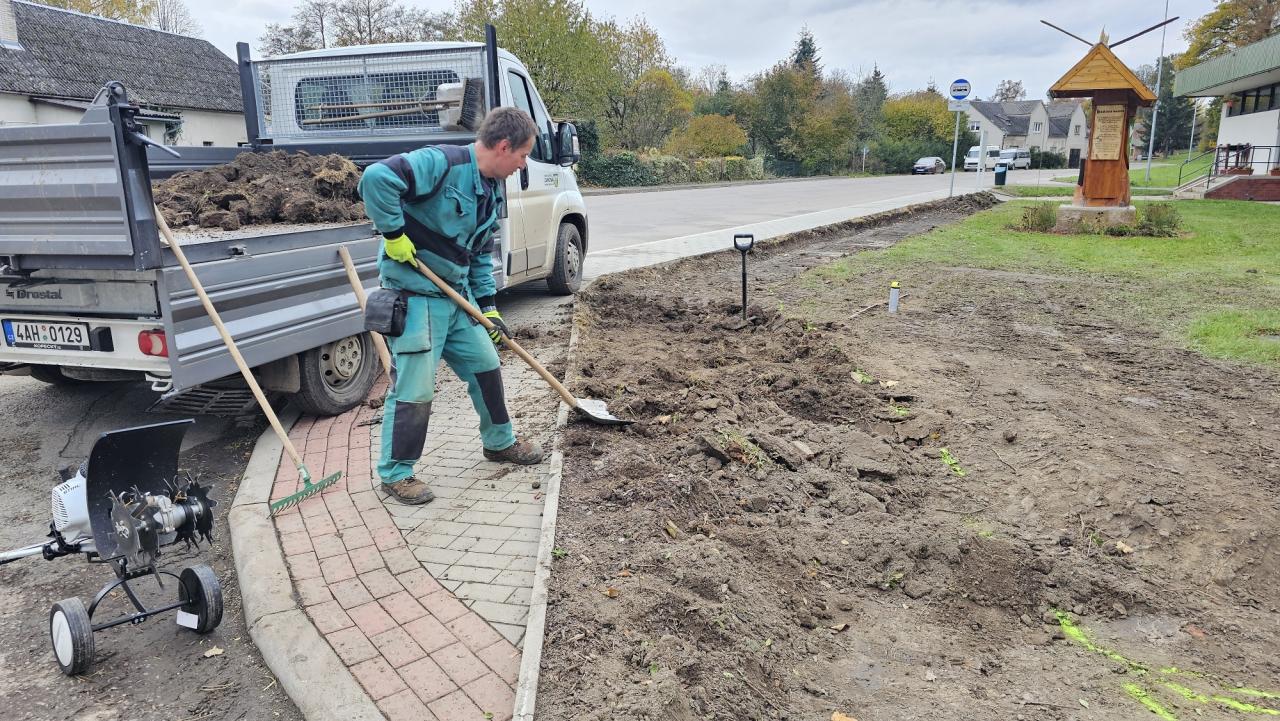 Příprava na výsadbu okrasných rostlin na návsi je v plném proudu