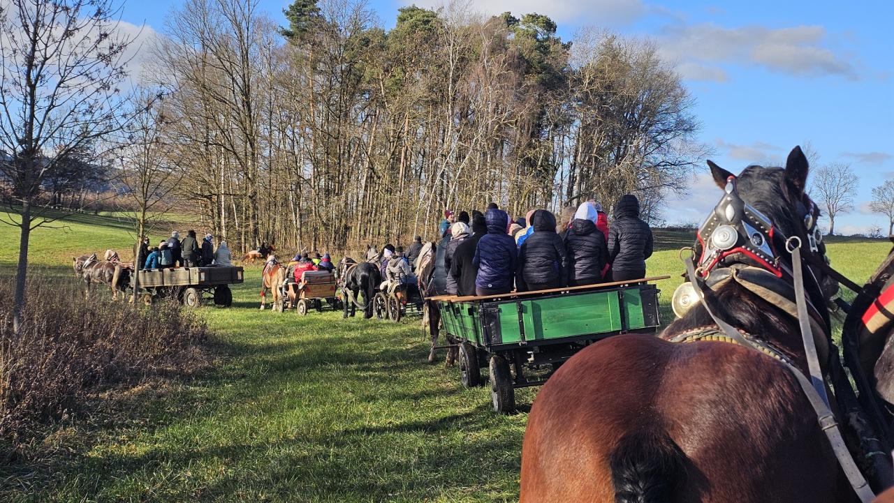 Po desáté hodině se koňské povozy vydaly na trasu. Na cestě byla připravena zastávka s občerstvením, kde si návštěvníci mohli opéct špekáček a zahřát se svařákem. Po návratu se na louce poblíž fotbalového hřiště konaly soutěže v jízdě zručnosti, které přilákaly pozornost nejen jezdců, ale i diváků. Pro děti byl připraven pestrý program – střelba ze vzduchovky, poznávání lesa a myslivosti. Nechybělo ani bohaté občerstvení, zejména výborný guláš.